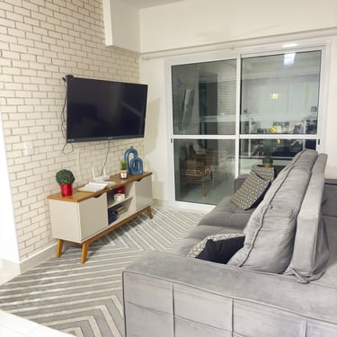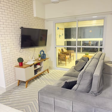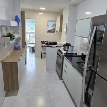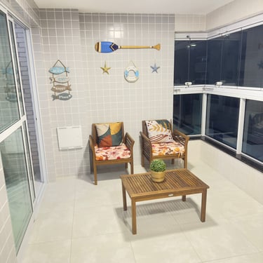 2 quartos (1 suíte), sacada ampla com vista para a serra